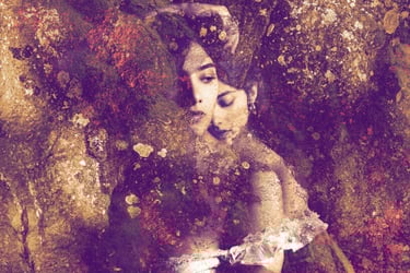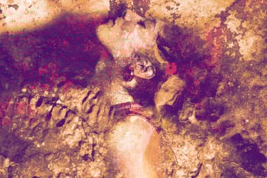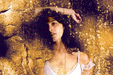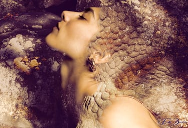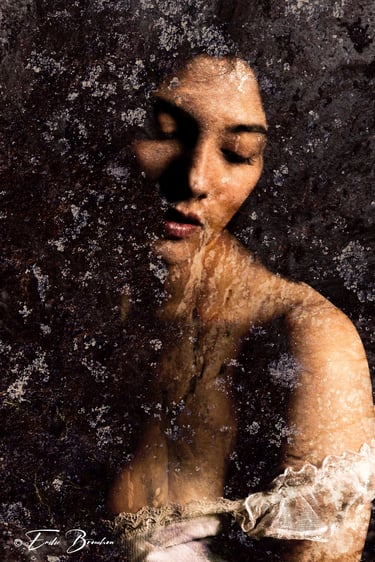 Cette démarche se situe à la croisée des arts visuels et picturaux : les jeux de lumière, de matière et de couleur dialoguent avec des références inspirées par l’univers des peintres que j’admire à Turner, Artemisia Gentileschi, Raphaël, Titien, Le Caravage, Klimt, Dalí ou Picasso. Chaque image convoque la mémoire de ces univers picturaux, tout en cherchant à inscrire le corps féminin dans un rapport organique et poétique avec la pierre et la forêt.